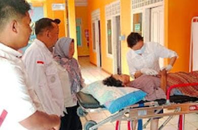 Way Kanan – Camat Rebang Tangkas, Hapisin, bersama Kepala Puskesmas, Limjamsos (Pendamping PKH) Kasi Kesos, dan Aparatur Kampung Madang Jaya memfasilitasi pengobatan seorang warga yang sedang sakit, Rabu (12/11/2025). Pasien bernama Painem, umur 47 tahun, warga Kampung Madang Jaya, Dusun 5, dirujuk dengan diagnosa dekubitus, akibat berbaring yang lama, di atas pantat bagian paha, telapak kaki bagian kiri.