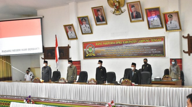 LAMPUNG TENGAH – Dewan Perwakilan Rakyat Daerah (DPRD) Lampung Tengah (Lamteng) Menggelar Rapat Paripurna Penyampaian Rancangan Perubahan Kebijakan Umum Anggaran (KUA), serta Perubahan Prioritas dan Plafon Anggaran Sementara (PPAS) Tahun 2021, di Gedung Dewan setempat Rabu (25/8).