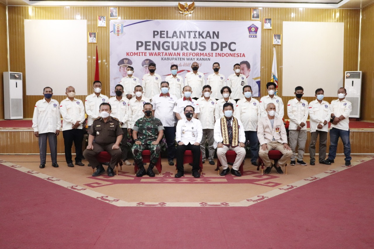 WAY KANAN – Bertempat di gedung serba guna (GSG) Pemda Way Kanan telah berlangsung kegiatan pelantikan pengurus Dewan Pimpinan Cabang (DPC) Komite Wartawan Reformasi Indonesia (KWRI) Kabupaten Way Kanan periode 2021-2024. Rabu, 12/01/2022.