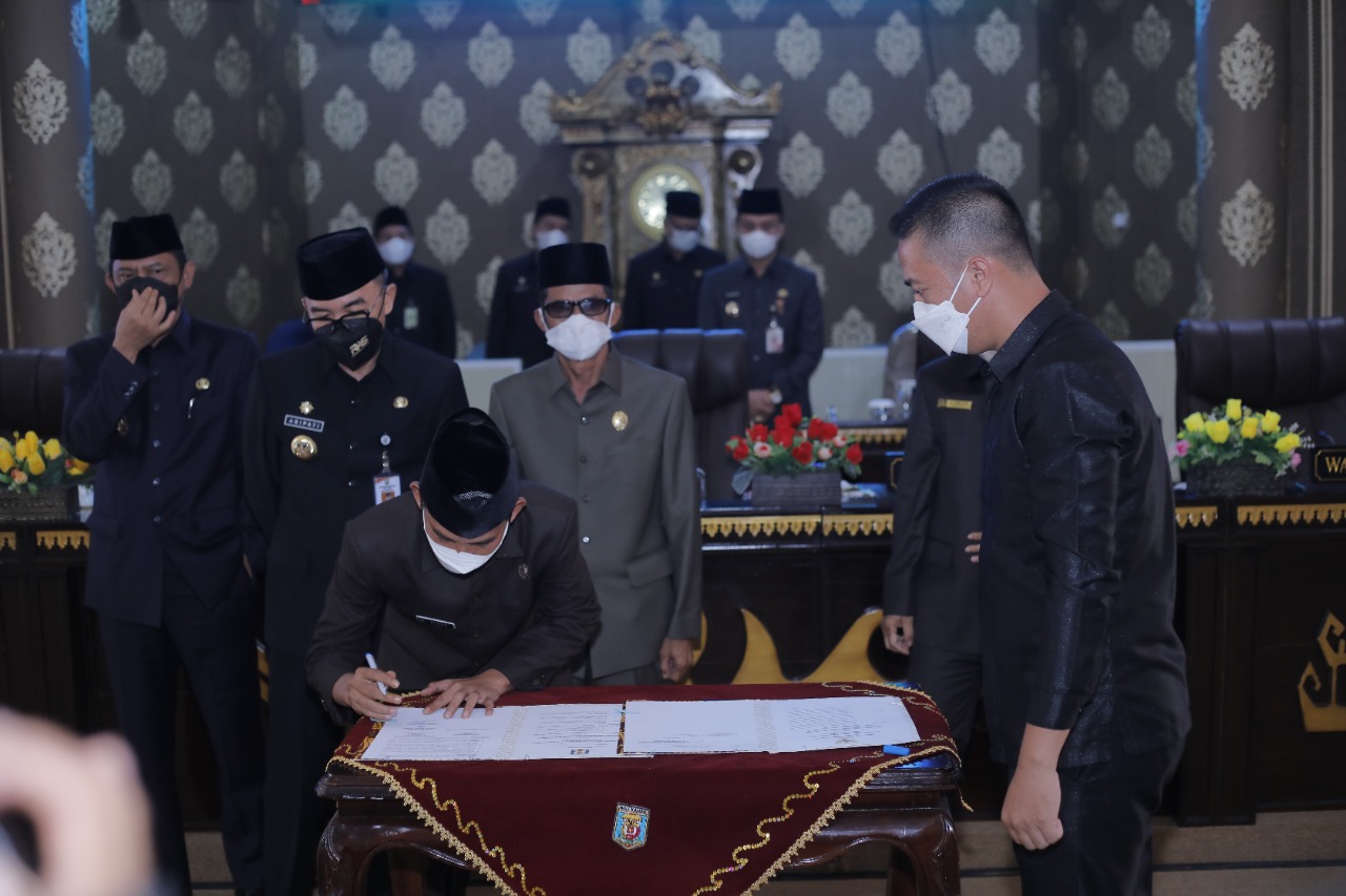 WAY KANAN _ Bupati H. Raden Adipati Surya, S.H.,M.M, menghadiri Rapat Paripurna pengesahan Rancangan Peraturan Daerah(Raperda),tentang Restribusi Persetujuan Bangunan Gedung, Rancangan Peraturan Daerah tentang Kabupaten Layak Anak dan Rancangan Peraturan Daerah tentang Perubahan Atas Peraturan Daerah Kabupaten Way Kanan Nomor 3 Tahun 2014 tentang Penyertaan Modal Pemerintah Daerah pada PT. Bank Lampung, di Ruang Rapat DPRD Kabupaten Way Kanan, Selasa (15/03/2022) yang dipimpin oleh Ketua DPRD Kabupaten, Nikman, S.H,dan turut dihadiri oleh, Wakil Bupati Drs. Ali Rahman, M.T, Forum Komunikasi Pimpinan Daerah, Sekretaris Daerah Kabupaten, Saipul, S.Sos.,M.Ip, para Staf Ahli Bupati, para Asisten Setdakab, Inspektorat Daerah Kabupaten, Dinas Pekerjaan Umum, Dinas Penanaman Modal dan Pelayanan Terpadu Satu Pintu, Dinas P3AP2KB, Dinas Pendidikan dan Kebudayaan, Dinas Kesehatan, Dinas Tanaman Pangan, Holtikultura dan Peternakan, Badan Pengelola Keuangan dan Aset Daerah, Badan Perencanaan Pembangunan Daerah, Badan Pendapatan Daerah, Bagian Administrasi Perekonomian, Bagian Hukum dan Bagian Organisasi Setdakab.