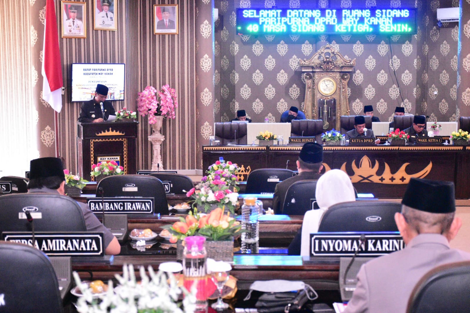 WAY KANAN – Wakil Bupati Way Kanan Ali Rahman,menghadiri paripurna DPRD Way Kanan dalam rangka Penyampaian Raperda Tentang Pertanggungjawaban Pelaksanaan APBD Tahun Anggaran 2021, berlangsung di ruang rapat paripurna, Senin (23/5).