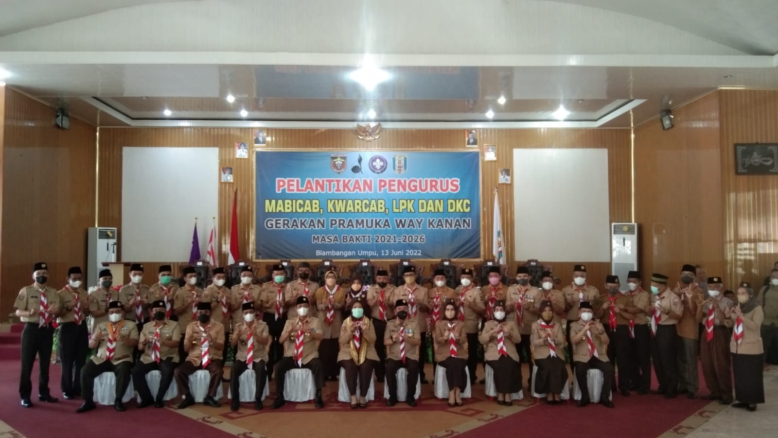 WAY KANAN – Ratusan pengurus Mabicab, Kwarcab, LPK, dan DKC gerakan Pramuka kabupaten Way kanan mengikuti pelantikan pengurus untuk masa Bhakti 2021 – 2026.