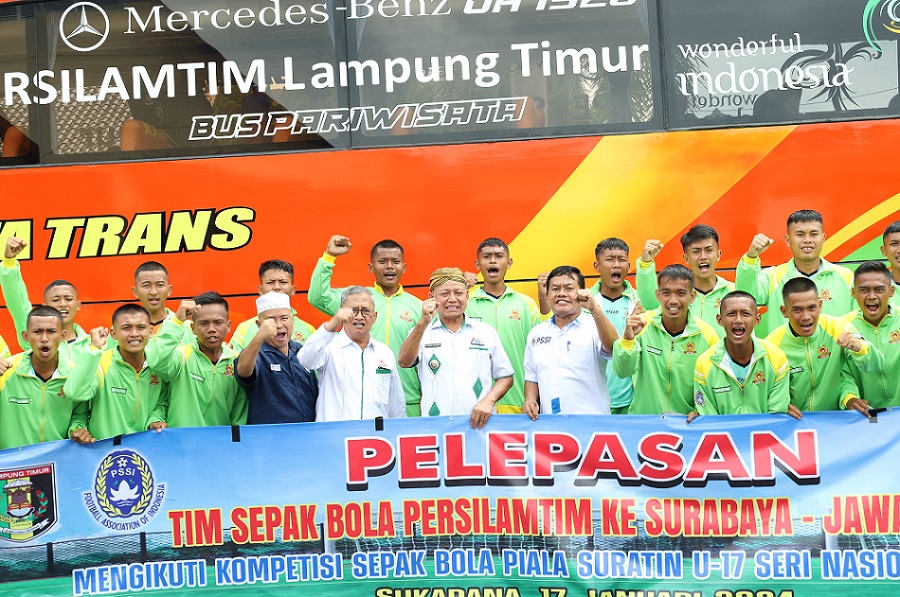 Bupati Lamtim M Dawam Rahardjo Lepas Tim Sepak Bola Persilamtim U-17 Piala Soeratin di Surabaya, Jawa Timur