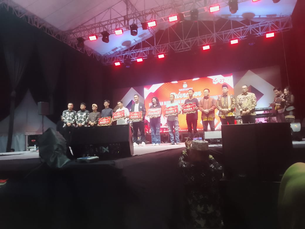 Lampung Timur – Peluncuran dan sosialisasi pemilihan Bupati dan wakil Bupati kabupaten Lampung Timur (Lamtim) digelar oleh KPU setempat di lapangan Bandar sribhawono, dengan menghadirkan artis Tri suaka dan Jihan Audy, Minggu malam, 26 Mei 2024.