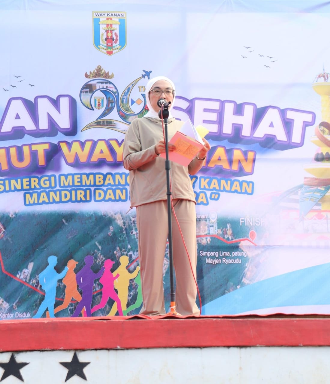 “Mari jadikan peringatan Hari Ulang Tahun ke-26 ini sebagai momentum untuk menumbuhkan semangat baru dalam mewujudkan visi dan misi Kabupaten Way Kanan yang mandiri dan sejahtera. Semoga kegiatan ini juga semakin mempererat tali silaturahmi dan memperkuat rasa kebersamaan di antara kita. Mari kita nikmati suasana pagi ini, saling menyapa, dan mempererat persaudaraan sebagai satu keluarga besar Way Kanan,” tutup Plt. Bupati Ayu Asalasiyah.