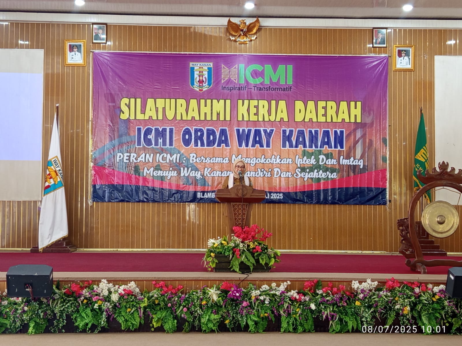 WAY KANAN – Bupati Ayu Asalasiyah, S.Ked, menghadiri kegiatan silaturahmi daerah Ikatan Cendekiawan Muslim Indonesia (ICMI) ORDA Way Kanan di Gedung Serbaguna Pemkab setempat, Selasa (8/7/2025). Acara silaturahmi daerah tersebut mengusung tema, ‘Bersama Mengokohkan Iptek dan Imttag Menuju Way Kanan Mandiri dan Sejahtera’.