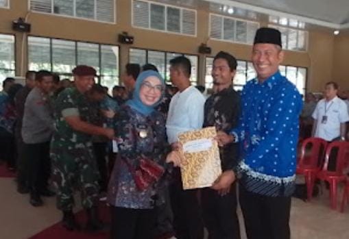 WAY KANAN – Bupati Way Kanan, Ayu Asalasiyah, menyerahkan akta notaris kepada 227 pengurus Koperasi Merah Putih Desa/Kelurahan Kabupaten Way Kanan, di Gedung Serbaguna Pemerintah Kabupaten Way Kanan, Kamis (7/8/2025).